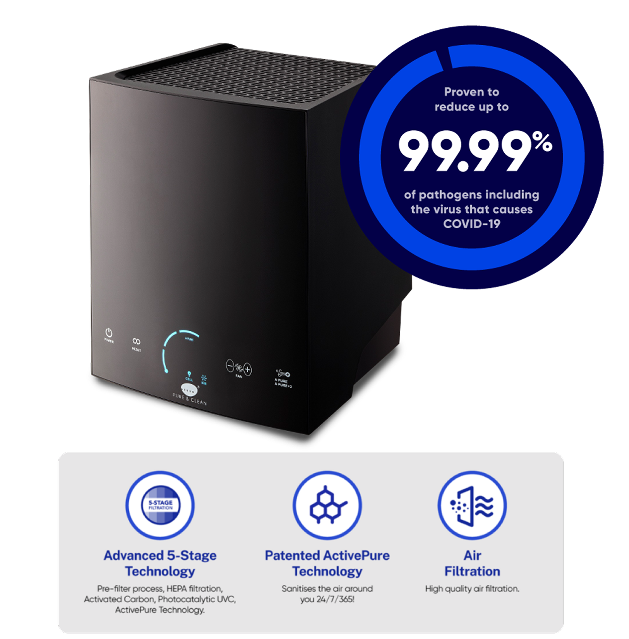 Combats viruses, bacteria, mould, fungi, and VOCs – including the virus that causes COVID-19.